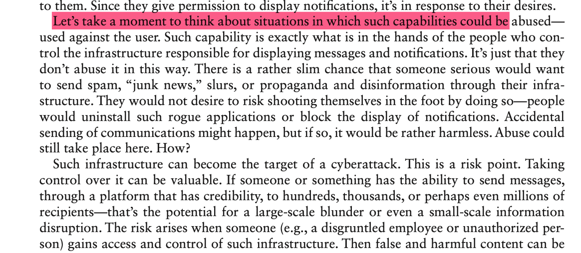 In my book PROPAGANDA (CRC Press, 2024) I predict and describe exactly this scenario. I outline the risk of hijacking push notification infrastructure as a vector for information operations at a potentially massive scale. The mechanism: whoever controls the infrastructure that sends messages to millions of devices through a trusted platform has a ready-made propaganda distribution channel. The hacking of Iran's BadeSaba prayer app, with 37 million installs, and the use of its notification system to deliver a PSYOP message synchronized with kinetic strikes calling on military personnel to defect: this is the realization of that scenario at a scale I described as potential and plausible. From hypothetical risk to operational use on the battlefield, it took just under two years.