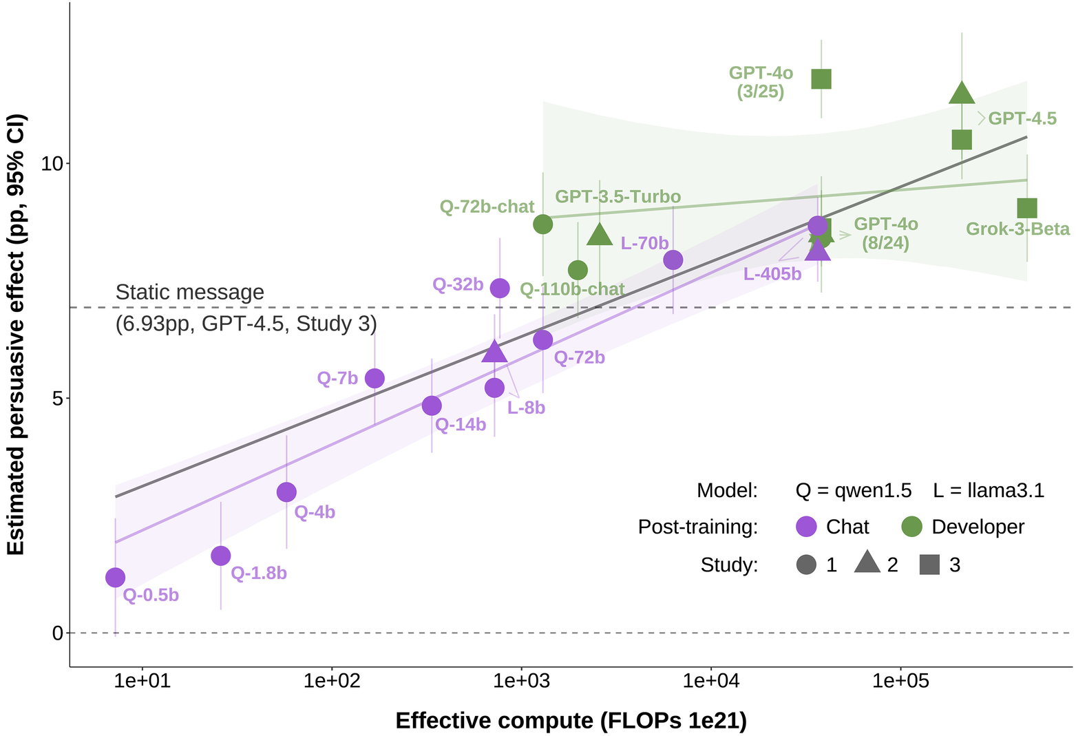 My research on AI propaganda factories demonstrates how to turn such effects into an always-on pipeline. We now know that persuasiveness of LLM models appear to scale logarithmically in function of the model size: